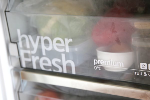 Für eine längere Frischhaltung sind sowohl Temperatur als auch Luftfeuchtigkeit entscheidend. Die hyperFresh premium 0°C Schubladen – eine für Obst und Gemüse mit Feuchtigkeitsregler sowie eine für Fisch und Fleisch – bieten dank unterschiedlicher Luftfeuchtigkeit überzeugende Vorteile. So bleiben Lebensmittel bis zu 3x länger frisch und die Vitamine wesentlich länger erhalten. Auch vermeiden die separaten Fächer unangenehme Geruchsübertragungen.
